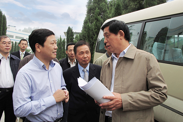 2009年11月,時任云南省委書記李紀恒(右三)來宜良紅獅調研,支持紅獅在云南發展
